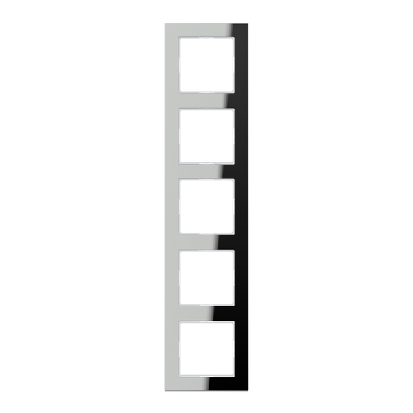 5-gang rāmis, kas paredzēts slēdžu un rozetēs elektrosistēmās, pielāgojams dažādām uzstādīšanas prasībām. Piemērots iebūvēšanai sienas kanālos. Materiāls – stikls, neapstrādāta virsma. Spīdīga apdare sudraba krāsā. Iespējama horizontāla un vertikāla uzstādīšana. Platums 84 mm, augstums 368 mm, dziļums 10 mm. Vienību skaits: 5 (1 horizontāls x 5 vertikāli).