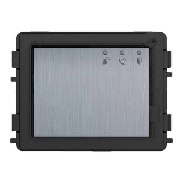 Für den Einsatz in Aluminium Außenstationsrahmen. Erste Ruftaste des ersten angeschlossenen Türklingelmoduls kann über DIP-Schalter wahlweise als Lichttaste aktiviert werden. Integrierte Zustandsanzeige über LED-Symbole (Erfüllt DIN 18040). Verbrauchseinheiten: 2