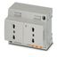 Double socket, Pin connector pattern type L, Push-in spring connection, for Italy and other countries, with extended touch proofness/shutter, LED display, gray, for mounting on a DIN rail in the service interface or direct mounting, 250 V AC, 16 A, -20 °C, 60 °C, CEI 23-50