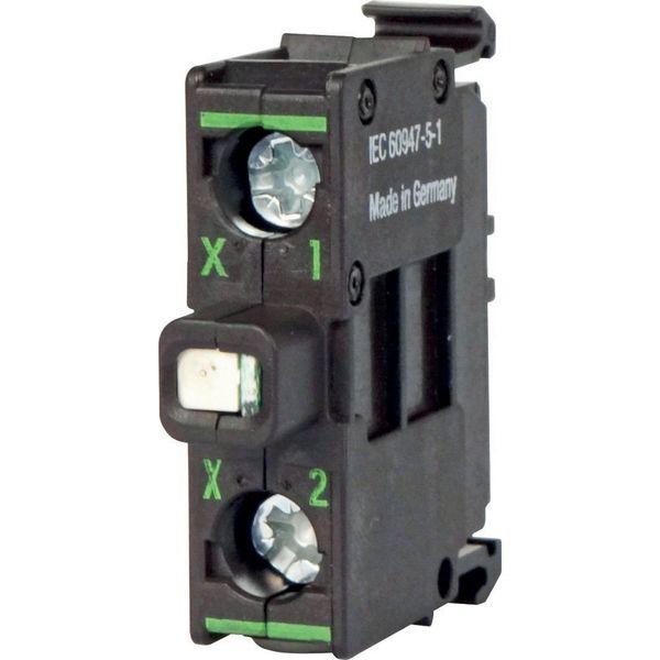LED element, Fixing: Base fixing, Connection technique: Screw terminals, Rated operational voltage: Ue= 12 - 30 V AC/DC, 50/60 Hz V, Rated operational current: Ie= 8 - 15 mA, Power consumption: Pmax.= 0.26 W, at 24 V, Degree of Protection: IP20, Connection to SmartWire-DT: no, Standards: IEC 60947-5-1