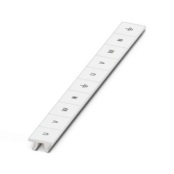 Marker for terminal blocks, Strip, white, labeled, can be labeled with: CMS-P1-PLOTTER, horizontal: U, V, W, N, GND, U, V, W, N, GND, mounting type: snapped, for terminal block width: 10.2 mm, lettering field size: 10.15 x 10.5 mm, Number of individual labels: 10
