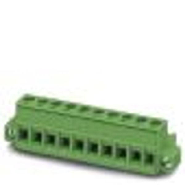 PCB connector, nominal cross section: 2.5 mm², color: green, nominal current: 12 A, rated voltage (III/2): 320 V, contact surface: Tin, type of contact: Female connector, number of potentials: 11, number of rows: 1, number of positions: 11, number of connections: 11, product range: MSTB 2,5/..-STF, pitch: 5 mm, connection method: Screw connection with tension sleeve, screw head form: L Slotted, conductor/PCB connection direction: 0 °, locking clip: - without locking clip, plug-in system: COMBICON MSTB 2,5, locking: Screw locking, mounting: Screw flange, type of packaging: packed in cardboard
