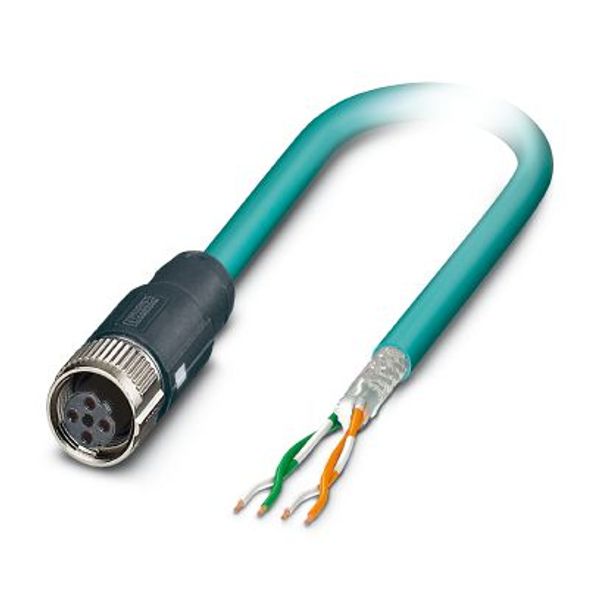 Network cable, Ethernet CAT5 (100 Mbps), 4-position, shielded (Advanced Shielding Technology), free cable end, on Socket straight M12 / IP67, coding: D, cable length: 10 m