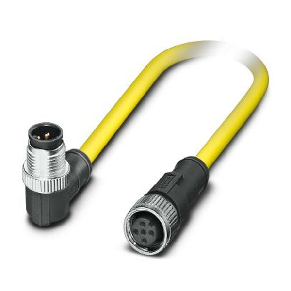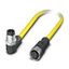 Sensor/actuator cable, 5-position, PVC, yellow, Plug angled M12, coding: A, on Socket straight M12, coding: A, cable length: 0.5 m