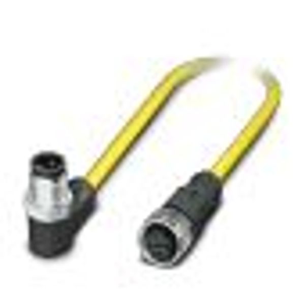 Sensor/actuator cable, 3-position, PVC, yellow, Plug angled M12, coding: A, on Socket straight M12, coding: A, cable length: 0.5 m