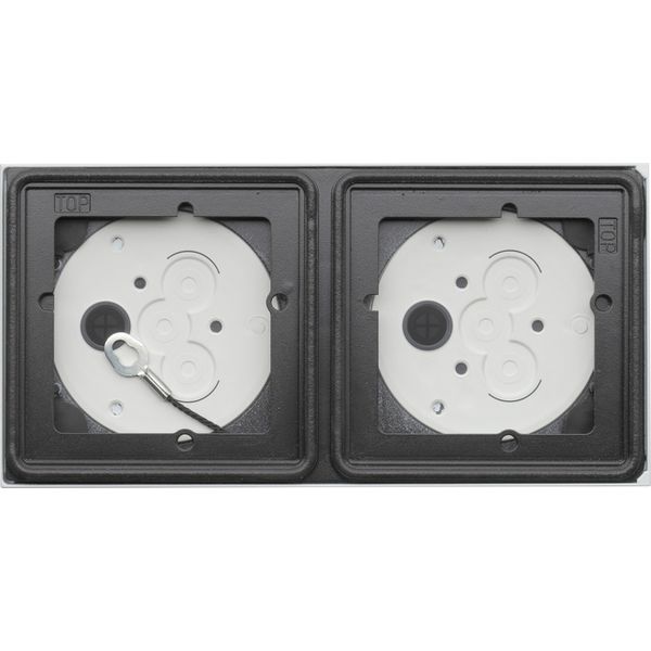 System 106 surface-mounted housing 2-gang traffic white (laquered) Independent of the construction progress, the housings can already be installed in the building shell. Cables and modules can then be added when they are needed. Housings available in metal alloy laquered in traffic white (RAL 9016) or anthracite: all robust materials which ensure durability. Features: Very low profile height of just 28.4 mm. Vertical and horizontal installation (only for surface-mounted housings, 2-gang, 3-gang, 4-gang and 5-gang) enables optimal adaptation to the installation site. Suitable for use on facades with a thermal insulation composite system. Notes : Surface-mounted housing, 1-gang only for use with door station module and System 106 Keyless In components.