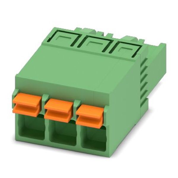 PCB connector, nominal cross section: 2.5 mm², color: green, nominal current: 12 A, rated voltage (III/2): 320 V, contact surface: Tin, type of contact: Female connector, number of potentials: 3, number of rows: 1, number of positions: 3, number of connections: 3, product range: FKCN 2,5/..-ST, pitch: 5 mm, connection method: Push-in spring connection, conductor/PCB connection direction: 0 °, locking clip: - Locking clip, plug-in system: COMBICON MSTB 2,5, locking: without, mounting: without, type of packaging: packed in cardboard