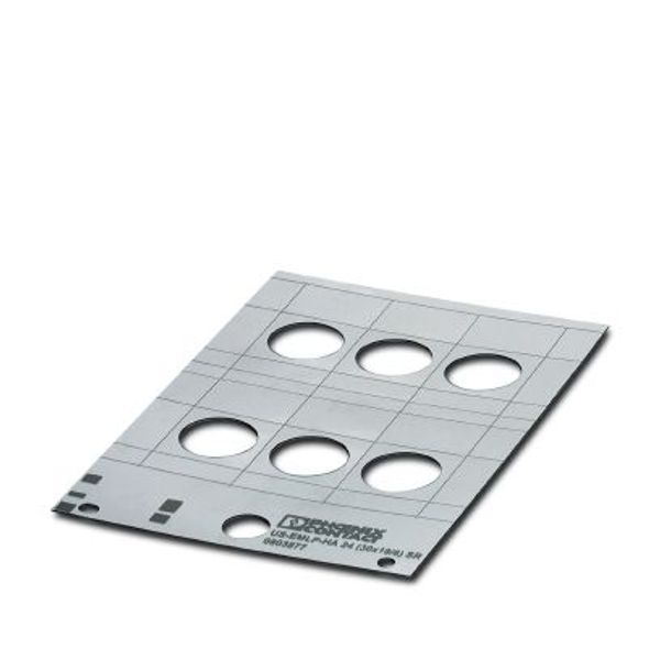 Plastic label, with bore hole, Card, silver, unlabeled, can be labeled with: BLUEMARK ID COLOR, BLUEMARK ID, THERMOMARK PRIME, THERMOMARK CARD 2.0, THERMOMARK CARD, mounting type: adhesive, lettering field size: 1 x 30 x 18 mm, 1 x 30 x 8 mm, Number of individual labels: 6