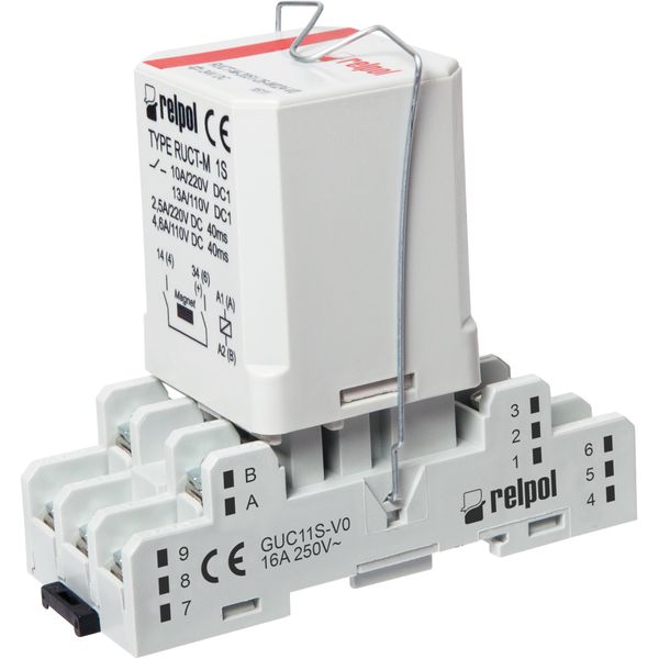 Relays for railroad industry - interface PRUCT-M-2051-26-W024-V0, 1 NO (double-break), contact gap ≥ 5 mm (2,5+2,5). Contact material: AgNi. Voltage coil 24 V DC. Rated load AC1 16 A / 250 V AC. Mounting: mounting on 35 mm rail. Cover protection category IP 20.