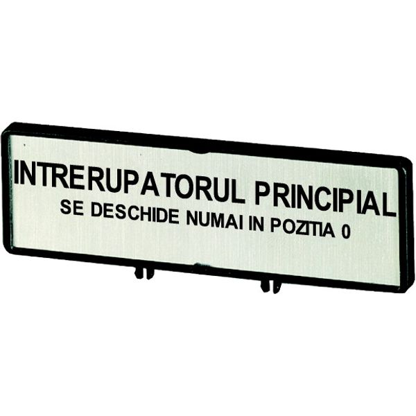 ZFS73-T0 Clamp with label, For use with T0, T3, P1, 48 x 17 mm, Inscribed with standard text zOnly open main switch when in 0 positionz, Language Romanian |