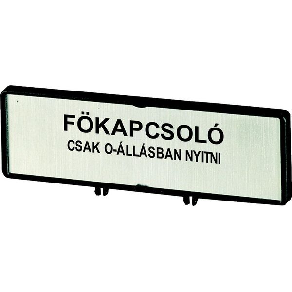 ZFS80-P3 Clamp with label, For use with T5, T5B, P3, 88 x 27 mm, Inscribed with standard text zOnly open main switch when in 0 positionz, Language Hungarian |
