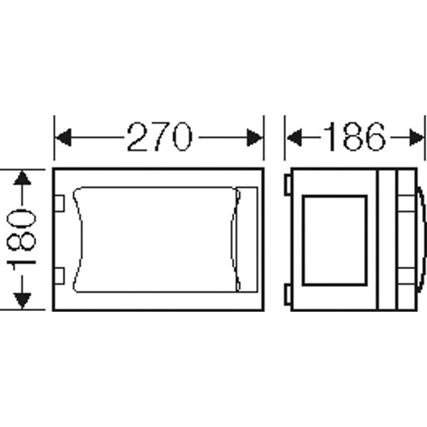 Enclosure with door for the assembly of distribution boards up to 250 A intended to be operated by ordinary persons according to IEC 61439-3. Open enclosure walls for the assembly or as single enclosure with closing plates. All insulated and made of high-quality polycarbonate. Quick enclosure connection with connectors and integrated gaskets. Large wall openings for the wiring. Cable entry via flanges. Wall fastening directly on enclosure, via external brackets or with mounting profile rails. Empty enclosure with transparent doors and sealable door locking with hand operation. For the installation of devices on to mounting plate or DIN rail. Built-in dimensions W 216 x H 126 x D 140 mm. Max. installation depth with built-in mounting plate 136 mm, with built-in DIN rail 125 mm.