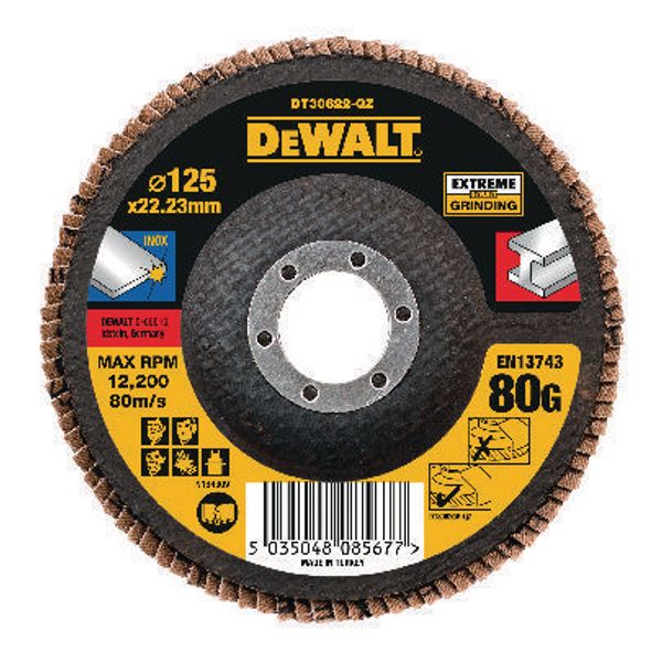 | Название производителя | Extreme Flap Disc - Flat 125*22,2mm X80G DT30622-QZ DeWalt |