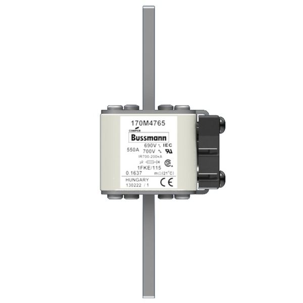 Fuse-link, high speed, 550 A, AC 690 V, size 1, 53 x 69 x 136 mm, aR, IEC, UL, K type indicator, 115 mm centers |