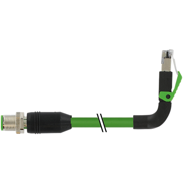 M12 male 0° D-cod./RJ45 90° up PUR 1x4xAWG22 shielded gn+dragch 1.5m |