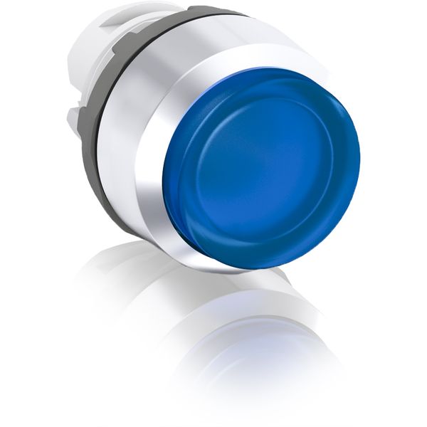 The MP3-21L Pushbutton is: Momentary - Extended - Blue - Illuminated - Chrome Plastic - No contact block