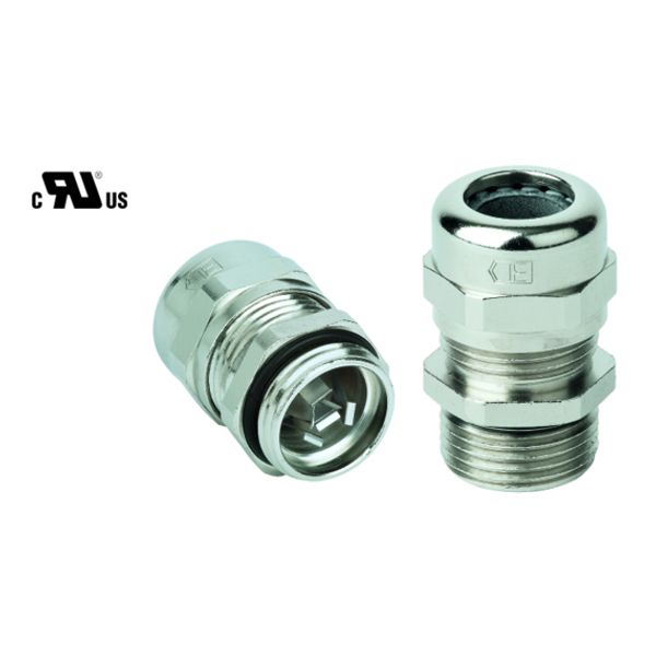 for cables and lines with shielding, quick and easy EMC connection of the shield braid via the contact spring and the intermediate connector with the housing potential, integrated strain relief, large sealing and clamping area, long connection thread, metric brass cable gland