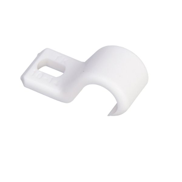 Plastic clamp 2303014 (set of 100 pieces) is designed for round cable 10-14 mm Installation in wood is done by using wood screws Color: white Material: PP( polypropylene) Installation in wood is done by using wood screws No. 6-8 For installations in concrete, brick, plasterboard, etc, use TP plugs TP0, TP1, TP2 and wood screws, or TPS-4 nail plugs