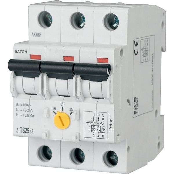 Switching device for voluntary or tariff-based current limiting for consumer systems, design conforms to EN/IEC 60898-1, EN/IEC 60947, utility company-approved, easy for power customers to switch back on, set screw underneath sealable cover cap